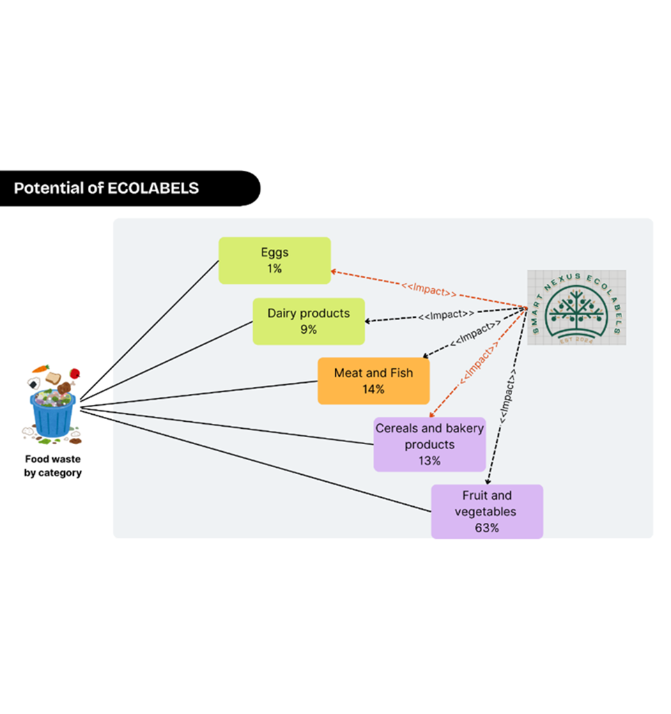 In this case study, we explore an optimistic scenario of reducing food waste by 20% across all major categories, with particular emphasis on household-level waste and inefficiencies within the supply chain. The intervention is designed around a citizen science approach and the enhancement of food literacy, supported by the introduction of Smart Nexus Ecolabels.
