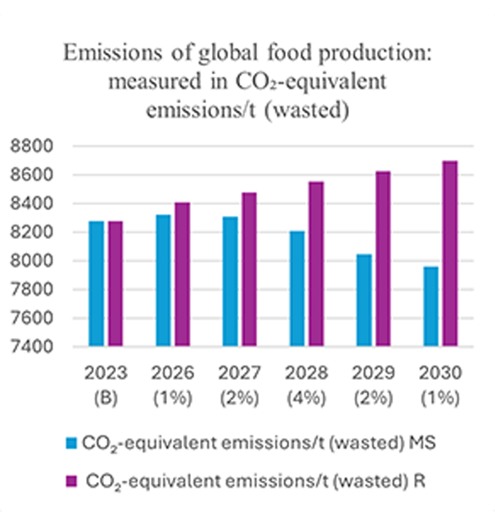 - Preventing one ton of waste also avoids 323 kg of CO₂ equivalent emissions and yields €133 in cost savings in food production and waste management.